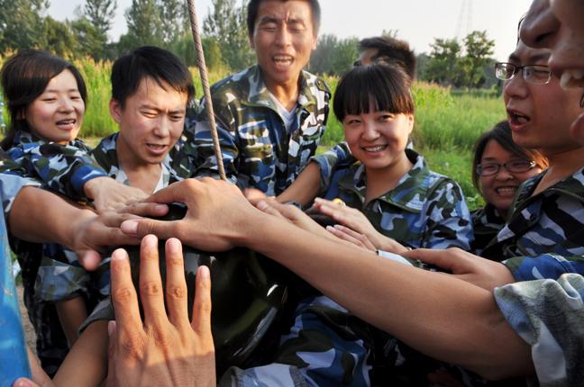 拓展訓練由專業(yè)的培訓老師組織、引導,通過高空斷橋、旱地龍舟、同心鼓、絕壁求生等豐富多彩的團隊合作項目,幫助新進大學生員工樹立了強烈的責任心和使命感,克服了對困難的恐懼,提升了自信心和挑戰(zhàn)的勇氣。每一位參訓人員通過團隊配合和自身努力,戰(zhàn)勝了重重困難、完成了一個又一個艱難的任務目標,充分激發(fā)了個人潛能,實現(xiàn)了自身的蛻變。