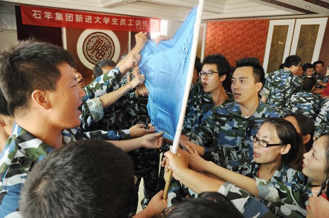 激情飛揚,神采奕奕的石羊新進大學生員工喊著口號進入了訓練場