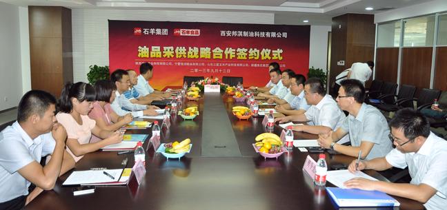9月13日的石羊集團(tuán)總部,秋高氣爽、陽(yáng)光燦爛,9點(diǎn)30分,經(jīng)過(guò)行政部與市場(chǎng)部前期的緊張籌備,油脂事業(yè)部與陜西建興農(nóng)業(yè)科技有限公司、寧夏鋒潤(rùn)糧油有限公司、山東三星玉米科技有限公司及新疆泰昆集團(tuán)股份有限公司四家油企“油品采供戰(zhàn)略合作簽約儀式”在三樓會(huì)議室如期舉行。