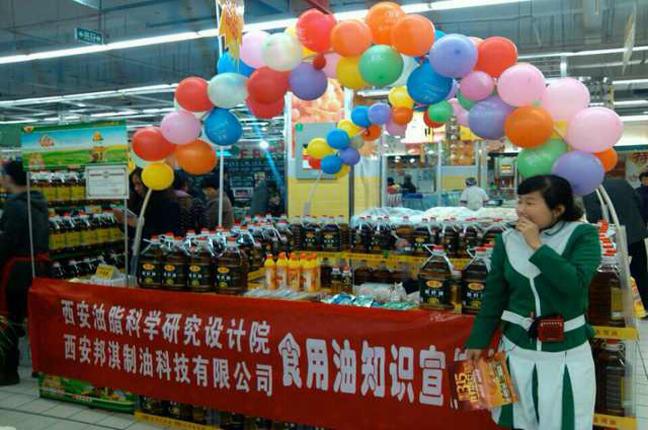 這次推廣,油脂產(chǎn)業(yè)以邦淇獲“2013陜西顧客滿意度測評食用油行業(yè)最佳顧客滿意獎”殊榮為契機(jī),高度重視、精心組織、全員參與,以“您的健康、我的牽掛”為主題,貫穿“誠信、責(zé)任、擔(dān)當(dāng)”;體現(xiàn)“綠色、安全、科普”,為更好指導(dǎo)科學(xué)消費(fèi),特意邀請石羊油脂產(chǎn)業(yè)戰(zhàn)略合作伙伴——西安油脂科學(xué)研究設(shè)計(jì)院有關(guān)專家全程參與西安的全部活動,接受消費(fèi)者現(xiàn)場咨詢、舉辦油品知識講座、指導(dǎo)食用油鑒別常識,重點(diǎn)是結(jié)合石羊油品安全、綠色、健康的價(jià)值理念進(jìn)行宣講,西安KA分別在華潤渭濱路店、人人樂玉祥門店舉行,兩天達(dá)成銷量180桶;社區(qū)分別在大明宮西鐵小區(qū)、鳳城六路菁華名門、乾唐華府舉行,兩天實(shí)現(xiàn)銷售100余桶,通過空桶優(yōu)惠、贈送防霧霾口罩等形式,對邦淇特別是石羊品牌的傳播意義深遠(yuǎn)。