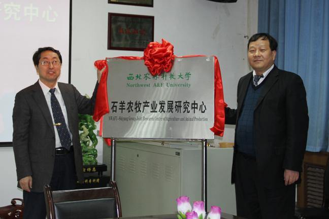 4月2日下午,石羊集團(tuán)與西北農(nóng)林科技大學(xué)動(dòng)物科技學(xué)院在動(dòng)科學(xué)院一樓會(huì)議室舉行“西北農(nóng)林科技大學(xué)-石羊農(nóng)牧產(chǎn)業(yè)發(fā)展研究中心”揭牌儀式,集團(tuán)總裁常青山、副總裁兼農(nóng)牧產(chǎn)業(yè)總經(jīng)理韓春元、飼料事業(yè)部總經(jīng)理李鵬華、西北農(nóng)林科技大學(xué)校長(zhǎng)助理、國(guó)家“千人計(jì)劃”入選者趙辛教授、教務(wù)處處長(zhǎng)陳玉林教授、學(xué)校科研處孫楠副處長(zhǎng)、動(dòng)科學(xué)院院長(zhǎng)姚軍虎教授、書(shū)記閆祖書(shū)老師、呼天明副院長(zhǎng)、孫超副院長(zhǎng)等20多名專家學(xué)者參加了揭牌儀式。揭牌儀式由閆祖書(shū)書(shū)記主持。