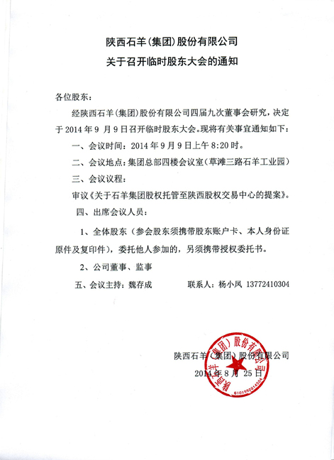 關(guān)于召開臨時(shí)股東大會(huì)的通知