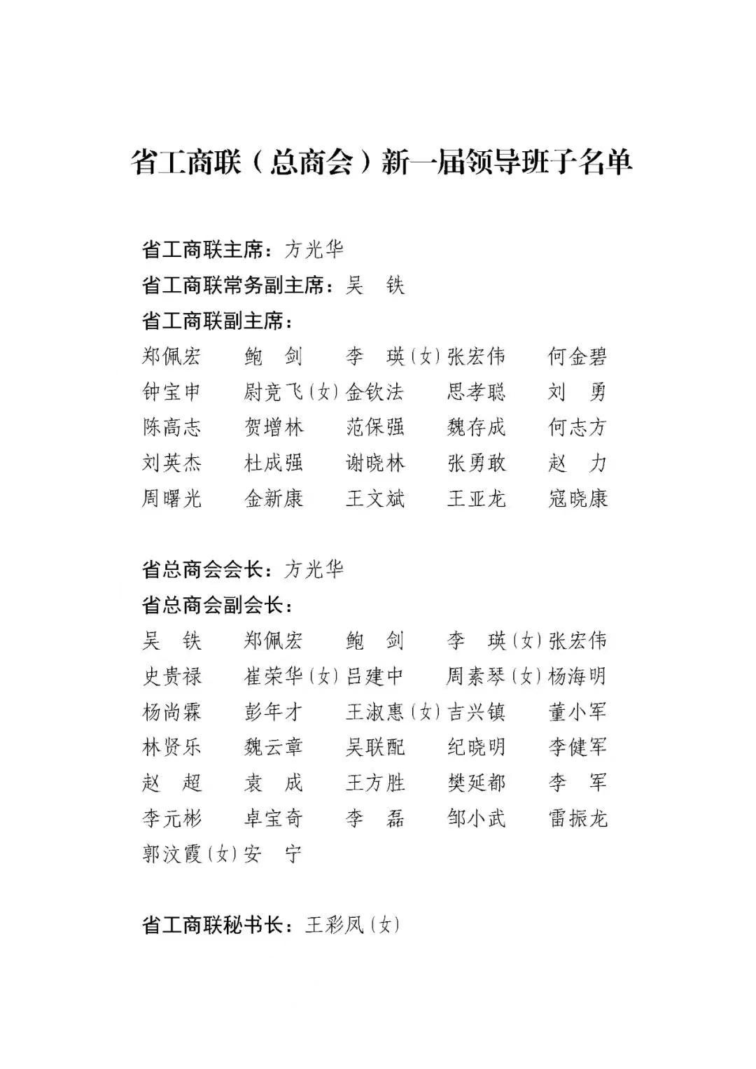 會議審議并通過了陜西省工商聯(lián)(總商會)第十二屆執(zhí)委會工作報告,選舉產(chǎn)生了省工商聯(lián)(總商會)新一屆領(lǐng)導(dǎo)班子。方光華當選省工商聯(lián)主席、省總商會會長,石羊集團黨委書記、董事長魏存成等當選陜西省工商聯(lián)(總商會)副主席。